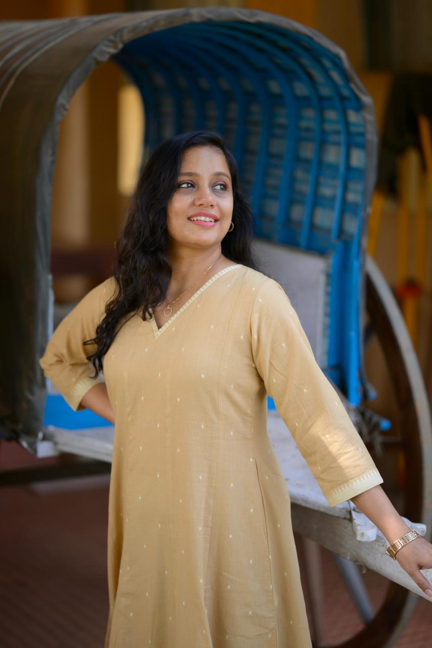 Panel dress with bordered neckline, highlighted sleeve ends, and detailed hem finish. Elegant design with subtle accents for a refined and stylish look.